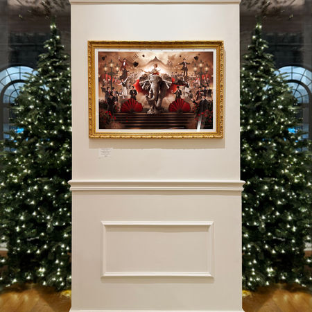 Pour célébrer les fêtes, le Printemps a offert à l’artiste une carte blanche exceptionnelle. Il y dévoile « Un Noël à Paris », une œuvre créée spécialement pour l’événement, pensée comme un pont artistique entre Paris et New York, mêlant élégance parisienne et énergie new-yorkaise. Une collaboration avec la maison de haute couture Georges Hobeika et la maison de haute joaillerie Cartier.